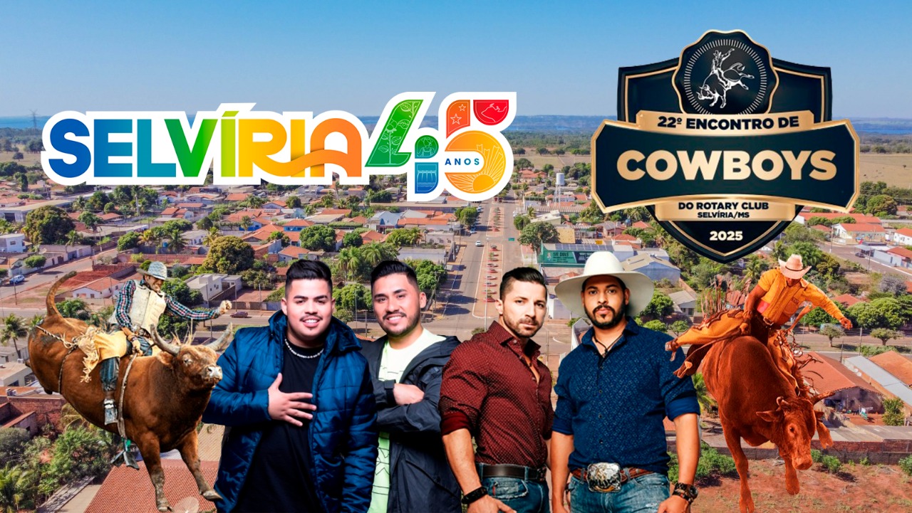 Começa hoje, 7 de maio, a 22ª edição do Encontro de Cowboys de Selvíria, com rodeio e shows. A realização é do Rotary Clube, com apoio da Prefeitura, por meio da Secretaria de Cultura, e da Câmara de Selvíria, do Governo do Estado do Mato Grosso do Sul e da Fundação de Cultura do Mato Grosso do Sul. A entrada será gratuita.