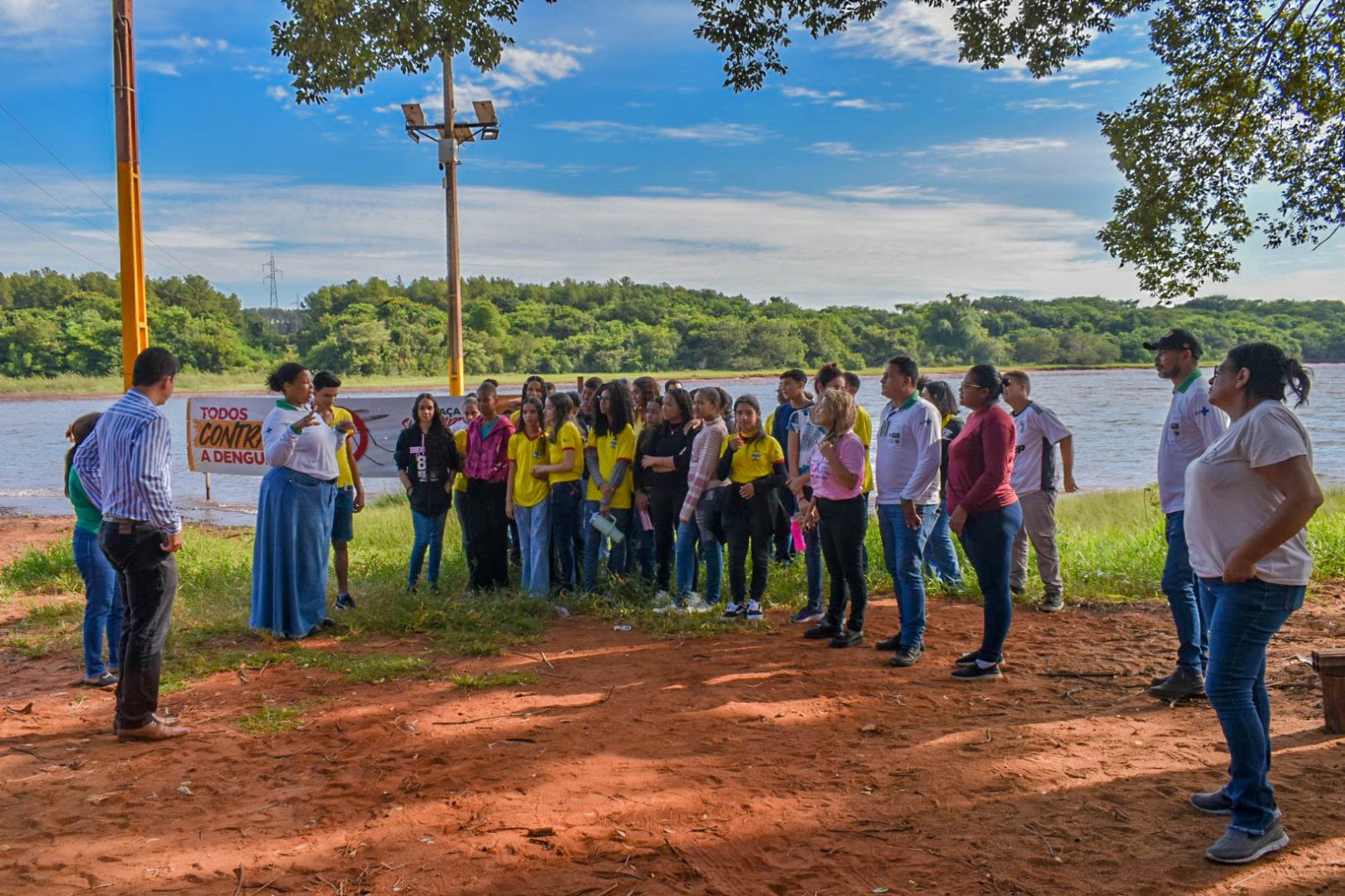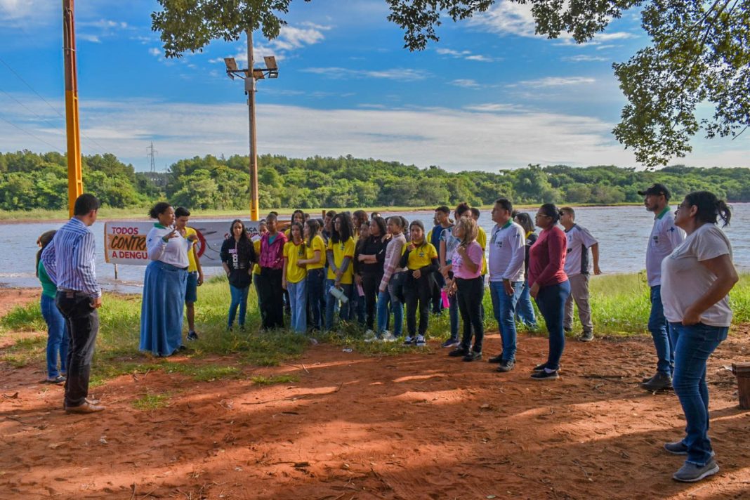 Cerca de 40 alunos da escola municipal Joaquim Camargo, que fica no Bairro Véstia, estiveram na última sexta-feira, 7 de março, na rampa que dá acesso ao rio Paraná, local bastante procurado para o lazer dos selvirenses, para mais uma ação contra a Dengue.