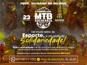 A 2ª Costelada MTB, que será realizada no dia 23 de novembro, promete unir esporte, solidariedade e confraternização em Selvíria. Nesta edição, todo o valor arrecadado com as inscrições será revertido na compra de alimentos e outros produtos destinados a famílias carentes do município.