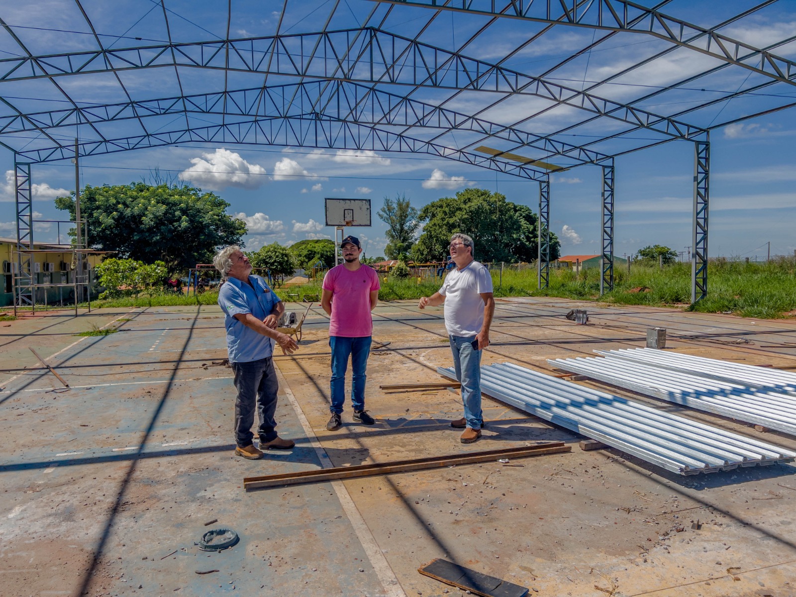 Além da instalação da estrutura metálica, o projeto também prevê melhorias no piso da quadra.