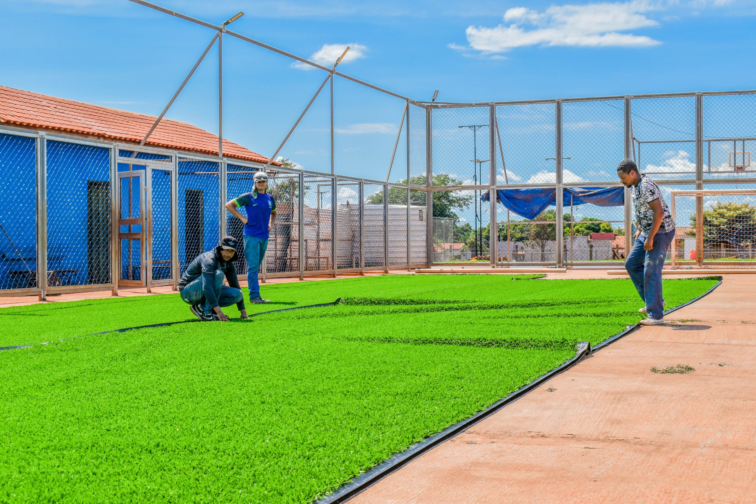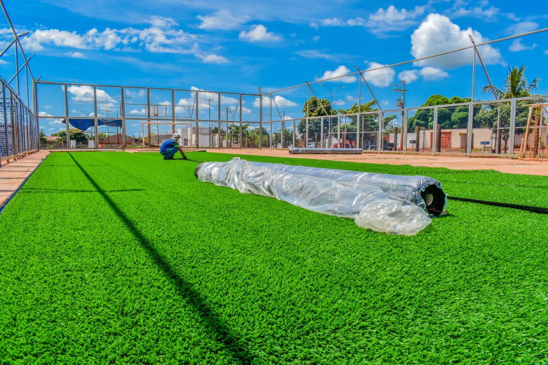 Entre as melhorias em andamento está a substituição completa da grama sintética do campo, garantindo melhores condições de uso e mais segurança para os praticantes.